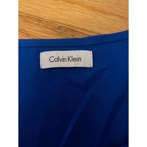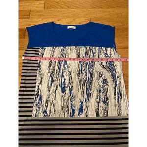 Calvin Klein women's blue color block patterned sleeveless stripped back blouse