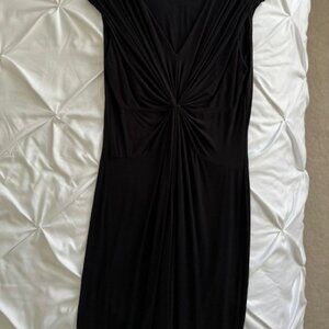 Calvin Klien Black Midi Dress with Draped, Gathered Front