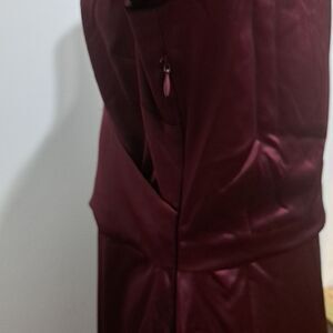 Calvin Klien Satin Puff Sleeve High Low Ruffled Hem Holiday Burgundy S 12 NWT