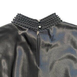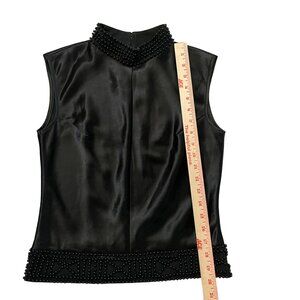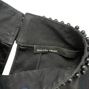 Calvin Tran Beaded Satin Blouse Top Women's Size Large Black Evening Party