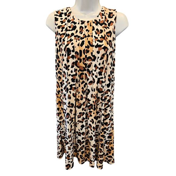 Calvin klein 2 / 4 (?) S LEAPORD PRINT lined swing shift pleat dress career EUC