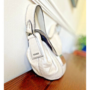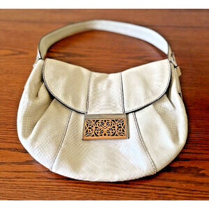Calvin klein Basketweave Boho Bag Handbag Faux Snake Skin Ivory Beige Iridescent