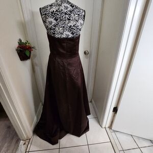tags: @Calvin klein coffee brown strapless pleated front ball gown xl
