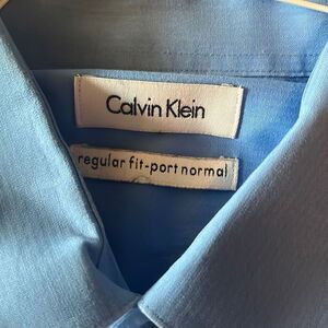 Calvin Klein Mens 16" 32/33 Blue Button Up Regular Fit Dress Shirt