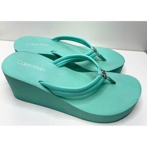 Calvin Klein Aqua Blue Wedge Flip Flops Sandals Size 11