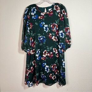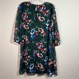 Calvin Klein Army Green Floral Long Sheer Sleeve Mini Dress Womens Size 6