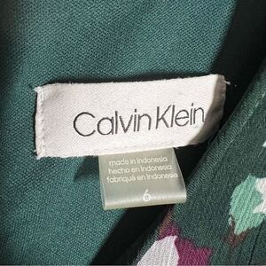 Calvin Klein Army Green Floral Long Sleeves Mini Dress Womens Size 6