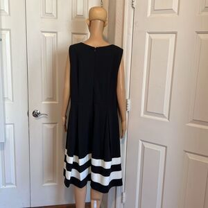 Calvin Klein Black White A-Line Midi Dress 16W Pleated Polyester Rayon Spandex