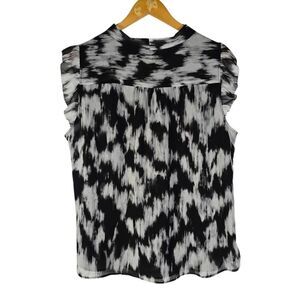 Calvin Klein Patterned Blouse | Size XL Black & White Keyhole Neckline