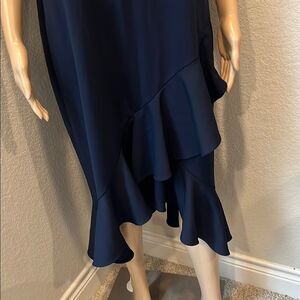 Calvin Klein Blue Ruffled Asymmetrical Sheath Dress