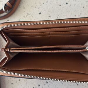Calvin Klein Brown and Orange Accessory Set Wallet and Phone Holder Crossbody Bags