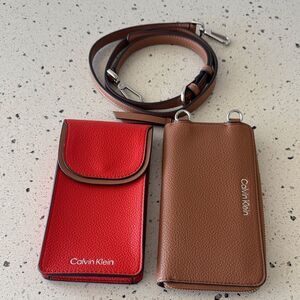 Calvin Klein Brown and Orange/Red Set Wallet and Phone Holder Crossbody Bags