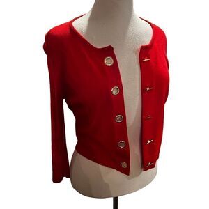 Calvin Klein Cardigan Sweater Red Cropped with Gold Toggle Closure size Medium