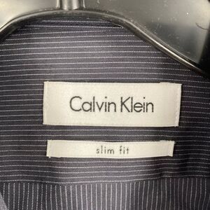 Calvin Klein Gray Striped Slim Fir Dress Shirt Classic Collar size 17