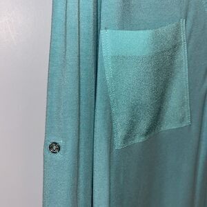 Calvin Klein Green Blue 3/4 sleeve Semi Fitted Activewear Shirt L 2 Pockets