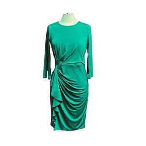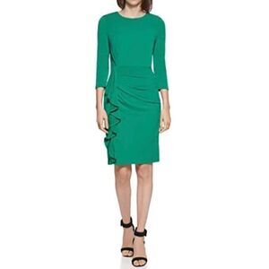 Calvin Klein Green Jersey Knit Ruching Dress Size 8