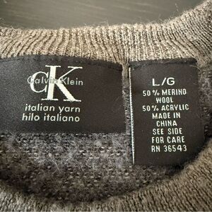 Calvin Klein Italian Yarn Sweater Womens Sz L Brown Crewneck Merino Wool Blend