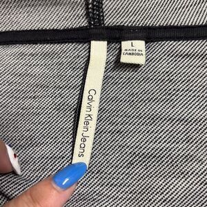 Calvin Klein Jeans Large Black Gray Hoodie Full Zip Kangaroo Pocket Jacket
