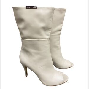 Calvin Klein Kaiya Cream Peep Toe Heeled Boots Size 6