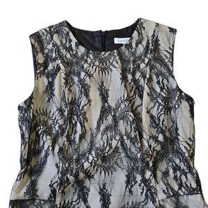 Calvin Klein Lace Overlay Sheath Dress Women's 4 Black Formal Sleeveless Stretch