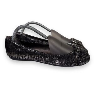 Calvin Klein Lilian Pebbled Black Metallic Flats Women's 8.5W