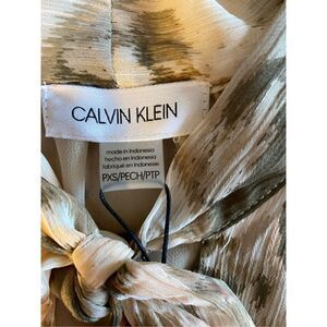 Calvin Klein NWT abstract, print, bowtie front short sleeve blouse size PXS