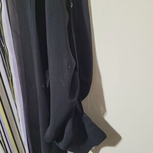 Dive into effortless style with the Calvin Klein Collection sheer tunic, an essential addition to your wardrobe that balances comfort with chic design. The striped pattern offers a contemporary edge, while the long roll-tab sleeves and collared neckline provide a touch of sophistication. Perfect for casual outings or travel, this versatile piece is a go-to for those who appreciate a blend of modernity and ease.