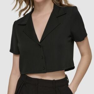 Calvin Klein suiting slim fit crop top button down. Short sleeve. Size S. NWT.
