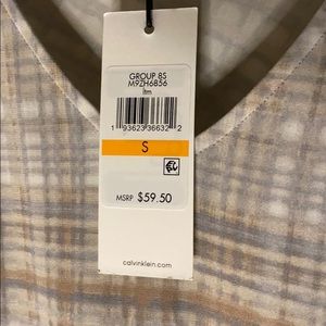 -NWT CalvinKlein Gray/White/Tan/Brown Stripe ruched top