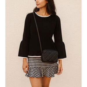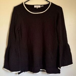 Calvin Klein Womens Black Flare Sleeve Round Neck Gauzy Blouse sz M Preppy Chic