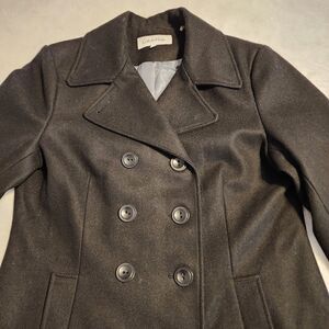 Calvin Klein womens black wool blend double breasted pea coat, size 8. Coat was mine and is excellent condition.