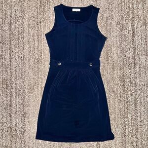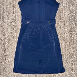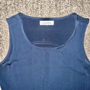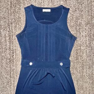 Calvin Klein Women's Pleated Belted Navy Blue Dress Size Medium