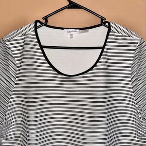 Calvin Klein Women's Sheer Stripe Top - Black & White - XL