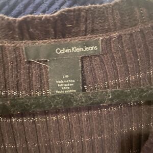 Calvin Klein Women's Tunic Sweater Brown Gold Metallic V Neck Long Sleeve Size XL.
