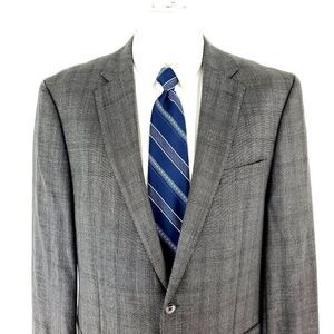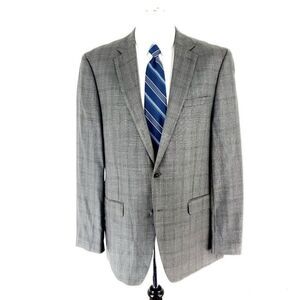 Calvin Klein Wool Silk 2 Button Blazer 42R Gray Brown Sharkskin Tagged 44L