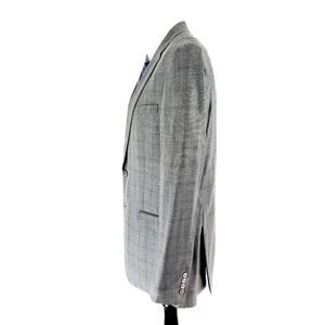 Calvin Klein Wool Silk 2 Button Blazer 42R Gray Brown Sharkskin Tagged 44L has been tailored from original size
