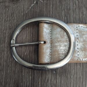 Calvin Klein Woven Tan Belt with Silver Buckle