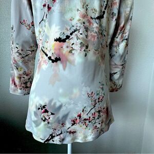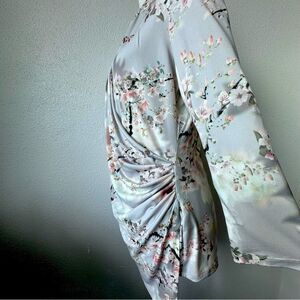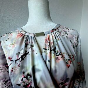 Calvin Klein Y2K Top Floral Ruched Split Neck Stretch Shirt