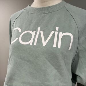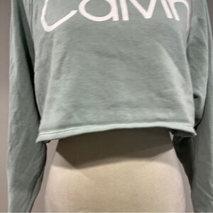 Calvin Klein oversized long sleeve pale mint Green Cropped Sweatshirt size m