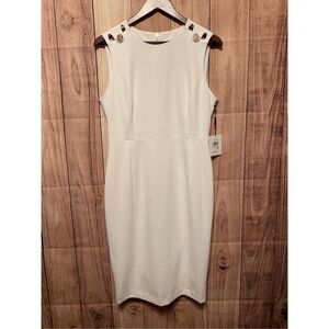 Calvin Klein size 10 NWT White Sleeveless Round Neck Back Zip Sheath Dress