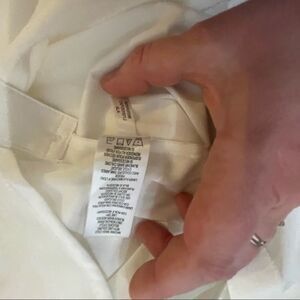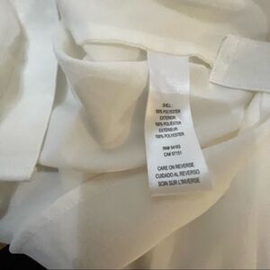 Lots of interesting details make this classic white blouse interesting. I love the button up sleeves. Side slots. Good condition.