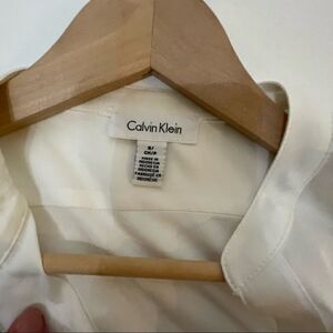 Calvin Klein white flowy nautical blouse with gold buttons and roll up sleeves