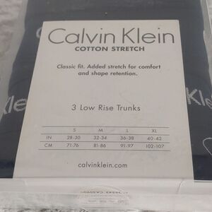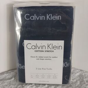 These New 3 pack black Calvin Klein cotton stretch low rise trunks are a size XL (40-42). Classic fit. Added stretch for comfort and shape retention. All offers welcome.