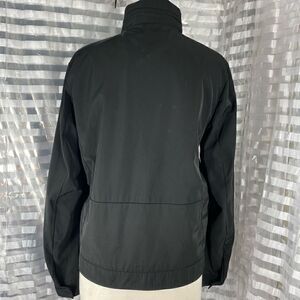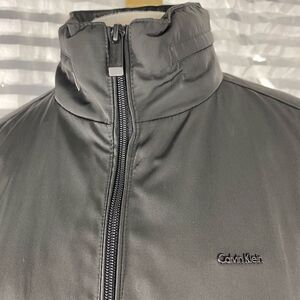 Bonded lightweight, wind breaker, water resistant full-zip and hidden drawcord hood, side zip pockets a Calvin Klein logo on the chest.