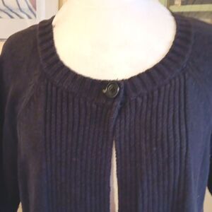 This is a great finish for your outfits. Short sleeves, ribbing detail on front. One button. 46 at chest, 48 at bottom hem. 22 long from shoulder to hem. Pretty cute!