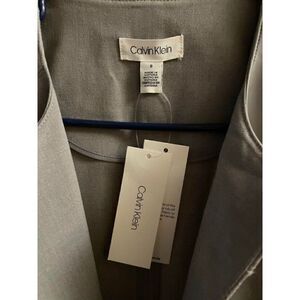 Brand new with tags Calvin Klein Suede Faux Leather Patchwork Long Jacket in Grey Women's Size 8. No rips, stains, tears, or other damage.