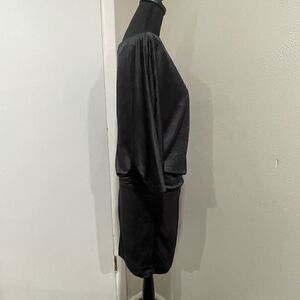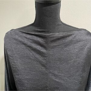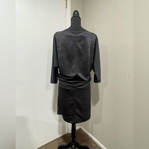 Super Comfortable Calvin Klein Dress. Dark, Shiny Gray Fabric. 3/4 Length Sleeve. Beautiful Horizontal Cut Neckline. Could be Worn with a Belt for a Shorter Look, or Down for a Bit Longer More Casual Look.