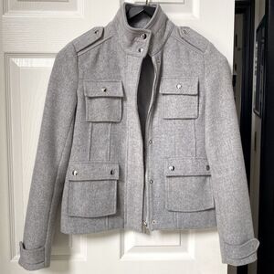This is a gently worn Calvin Klein military style fall/winter jacket with silver hardware.