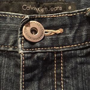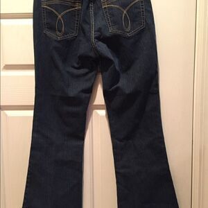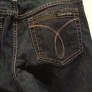 Good condition, size 6 flare Calvin Klein Jeans. I’m 5’10 and they fit perfectly with a pair of boots or heels.