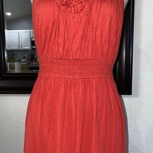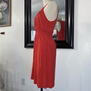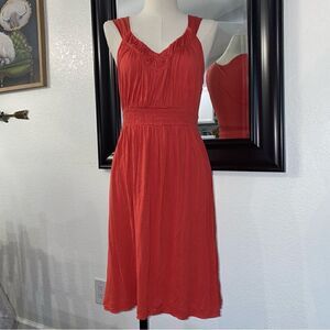 Calvin Klein Jeans Women's Orange Ruched Dress V-Neck Sleeveless Size Small